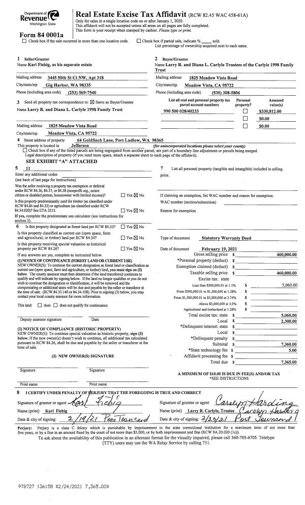 | 2 | 01/29/2021 | QCD | Quit Claim Deed | GERALD T CRUSON TRUSTEE | FAITH KAREN ALDENE MORGAN TRUST | | | | 136249 | |