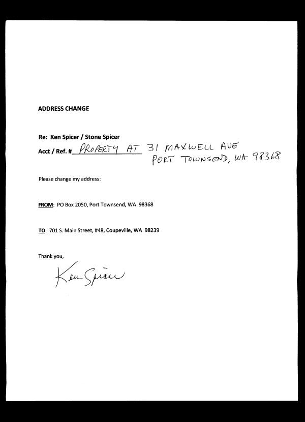 | Mailing Address: | 31 MAXWELL AVE PORT TOWNSEND, WA 98368-9487 | % Ownership: | 100.0000000000% |