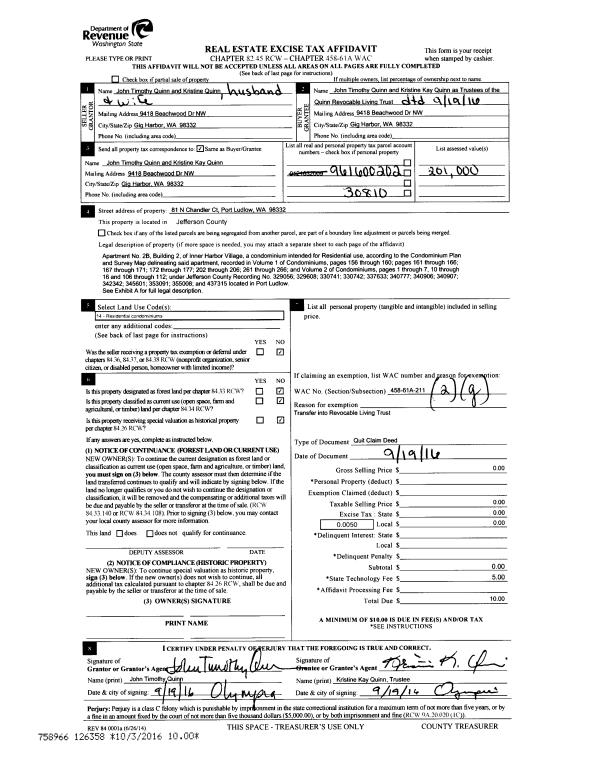 | 4 | 09/19/2016 | QCD | Quit Claim Deed | | | | | | 126358 | |