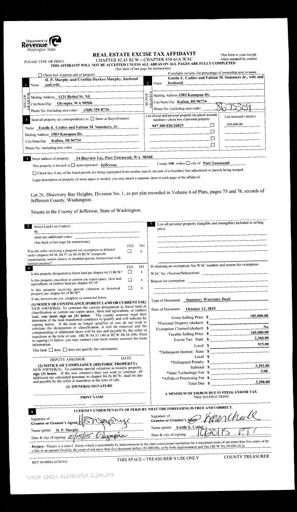 | Mailing Address: | 291 E ARDEN ST PORT HADLOCK, WA 98339-9609 | % Ownership: | 100.0000000000% |