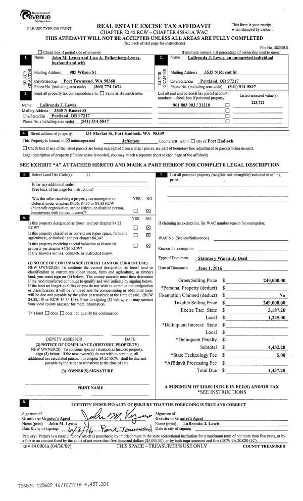 | 1 | 06/01/2016 | SWD | Statutory Warranty Deed | JOHN LYNES | LABRENDA J LEWIS | | | $249,000.00 | 125609 | |