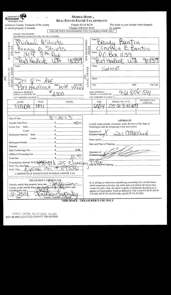 | 5 | 04/14/2014 | SWD | Statutory Warranty Deed | BRANDY BUNTIN | FRANK WELLE | | | $50,000.00 | 121005 | |