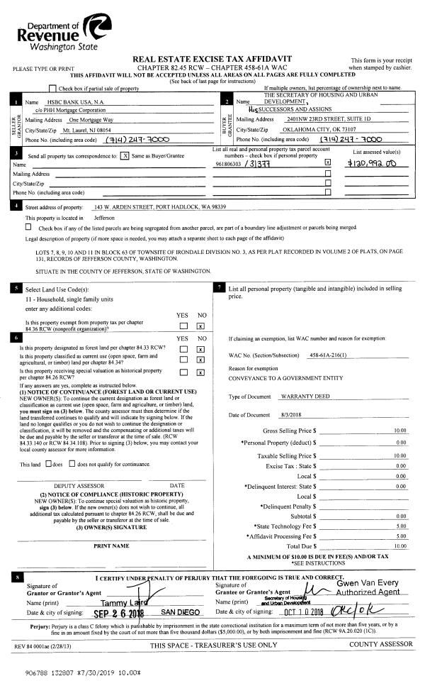 | Address: | 143 W ARDEN ST PORT HADLOCK, WA 98339 | Mapsco: | 043/031 |