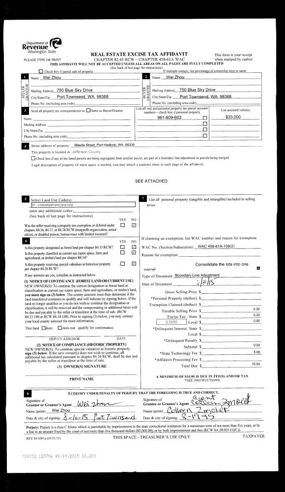 | 2 | 06/03/2015 | BLA | Boundary Line Adjustment | WEI ZHOU | | | | | 123796 | |