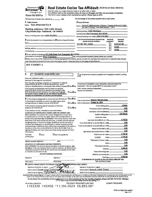 | Mailing Address: | 280 W KINKAID ST PORT HADLOCK, WA 98339-9660 | % Ownership: | 100.0000000000% |