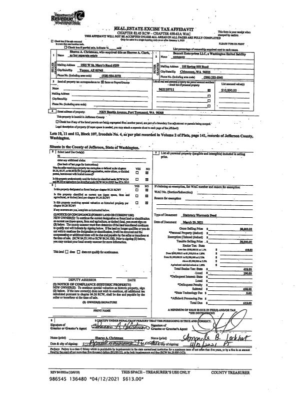 | 2 | 03/29/2021 | SWD | Statutory Warranty Deed | SHARON A CHRISTMAN | BENNETT ENTERPRISES LLC | | | $38,000.00 | 136480 | |