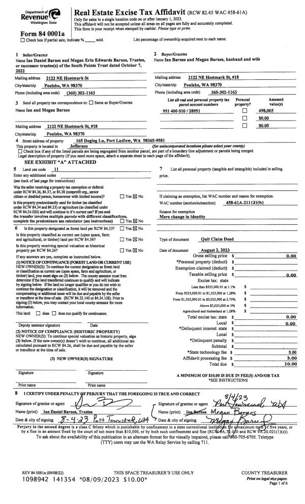 | 1 | 11/07/2025 | SWD | Statutory Warranty Deed | FAIRBANK REVOCABLE LIVING TRUST | JEFFERSON LAND TRUST | | | | 145192 | |