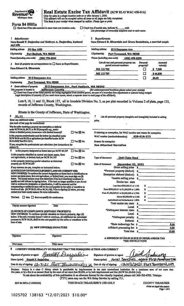| Address: | 93 S DUQUESNE AVE PORT HADLOCK, WA 98339 | Mapsco: | 049/082 |