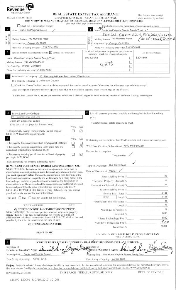 | 4 | 05/21/2014 | WD | Warranty Deed | W E SETON | W E SETON & MARILYN SETON RECOVABLE TRUST | | | | 121209 | |