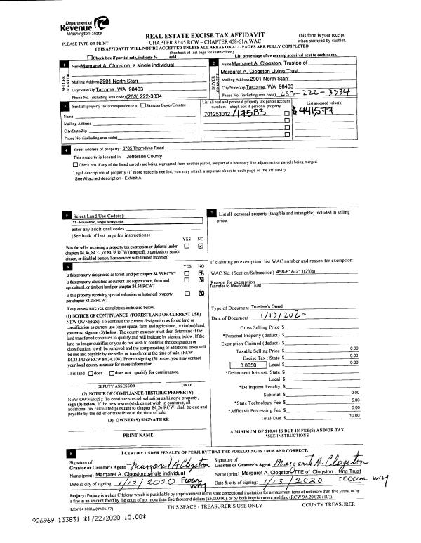 | Mailing Address: | 42 S CARNEGIE AVE PORT TOWNSEND, WA 98368-2533 | % Ownership: | 100.0000000000% |