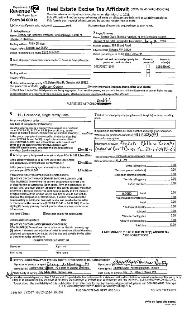 | 2 | 07/22/2022 | SWD | Statutory Warranty Deed | ERNEST C M RILEY | DAVID A & ANDREA E JAMES | | | $899,999.00 | 139550 | |