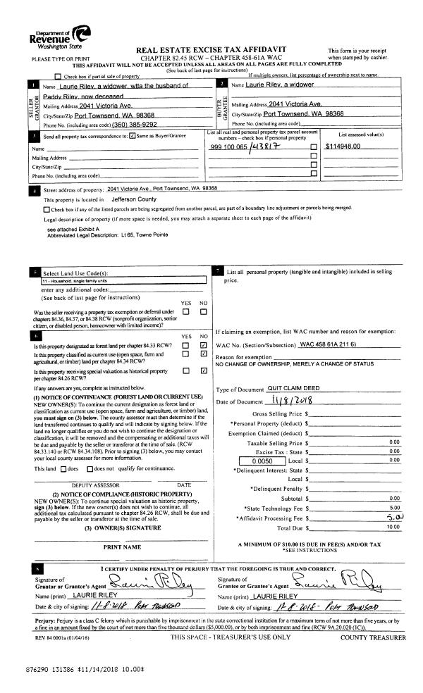 | Mailing Address: | CHRISTINE P PARSONS PO BOX 1202 PORT HADLOCK, WA 98339-1202 | % Ownership: | 100.0000000000% |