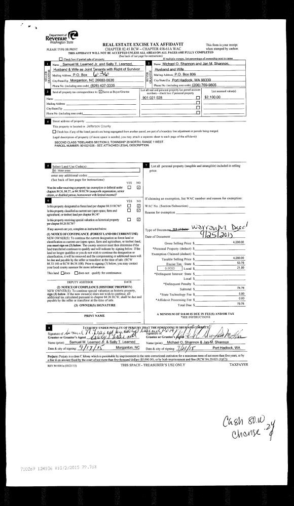 | 1 | 07/29/2015 | QCD | Quit Claim Deed | JON K MORRISON TESTAMENTARY TRUST | TWENTY TEN LLC | | | | 123731 | |