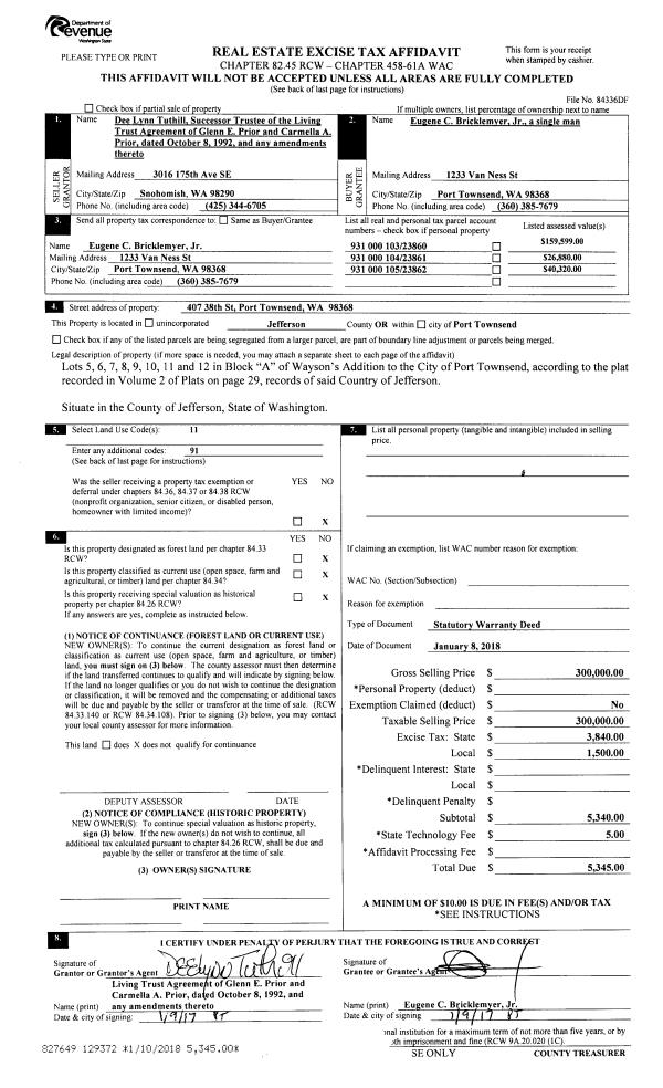 | 2 | 10/06/1998 | SWD | Statutory Warranty Deed | YIN, NICK D/PAMELA L | WICKERN, LARRY L/BRENDA J | 0 | 0 | $82,500.00 | 85448 | 0 |