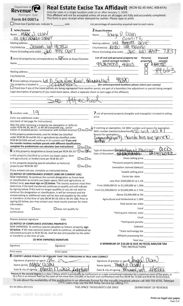 | 2 | 01/11/2021 | SWD | Statutory Warranty Deed | WILLIAM & TONYA PEARSON | ANDREW E REED & MARILYN R MEYER | | | $108,000.00 | 135930 | |