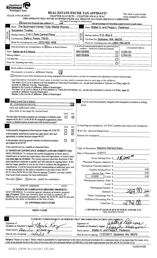 | 7 | 04/27/1995 | SWD | Statutory Warranty Deed | SATO, RONALD G/JILL L | ELDRIDGE HOMES INC | 0 | 0 | $20,000.00 | 76930 | 0 |