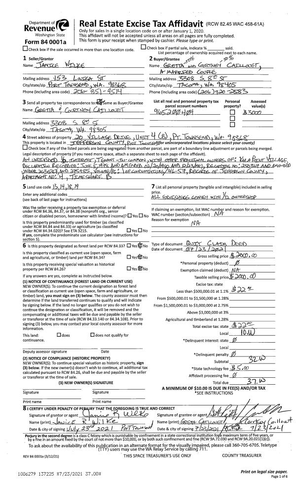 | 1 | 07/23/2021 | QCD | Quit Claim Deed | JANICE ROLAND WILKE | GRETTA & COURTNEY CAILLOUET | | | $2,000.00 | 137225 | |