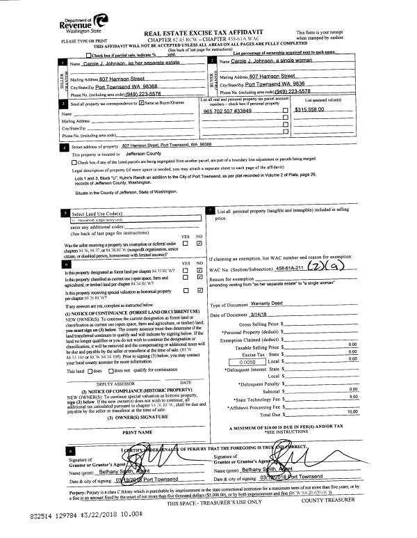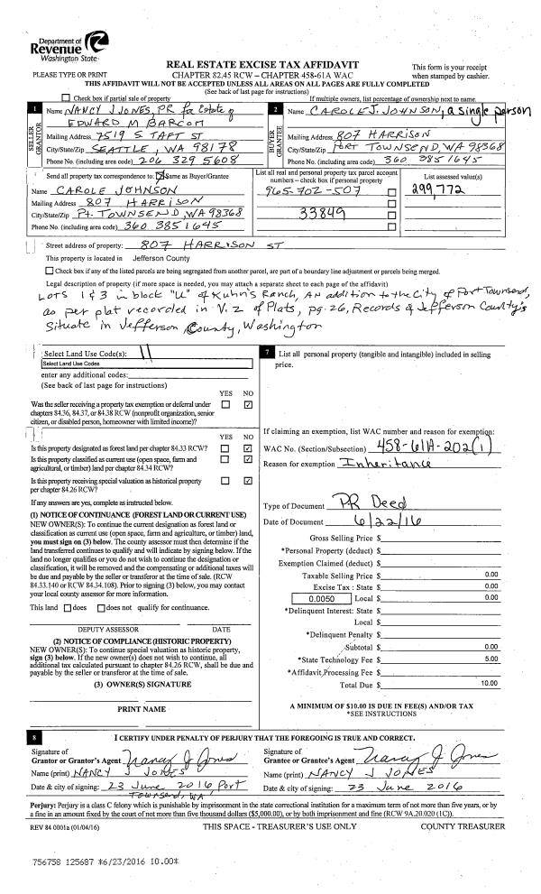 | 2 | 06/22/2016 | PRD | Personal Representatives Deed | EDWARD BARCOTT | CAROLE J JOHNSON | | | | 125687 | |