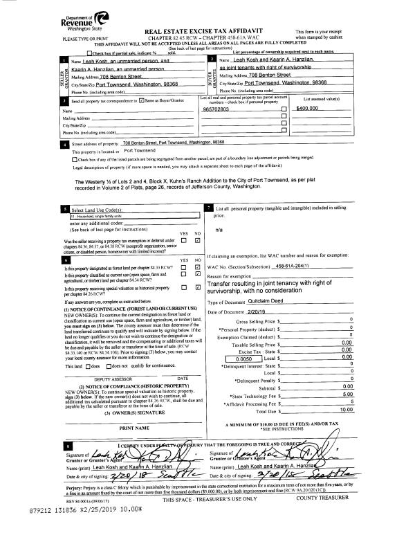 | 4 | 02/20/2019 | QCD | Quit Claim Deed | | | | | | 131836 | |