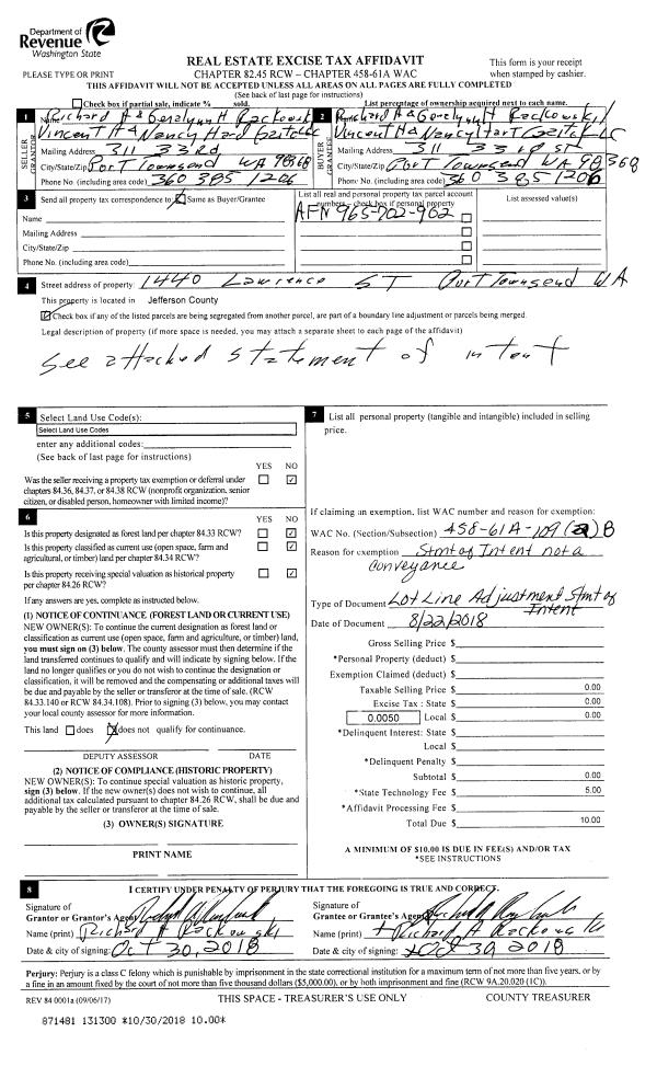 | 1 | 08/22/2018 | BLA | Boundary Line Adjustment | | VINCENT A GAITO | | | | 131300 | |