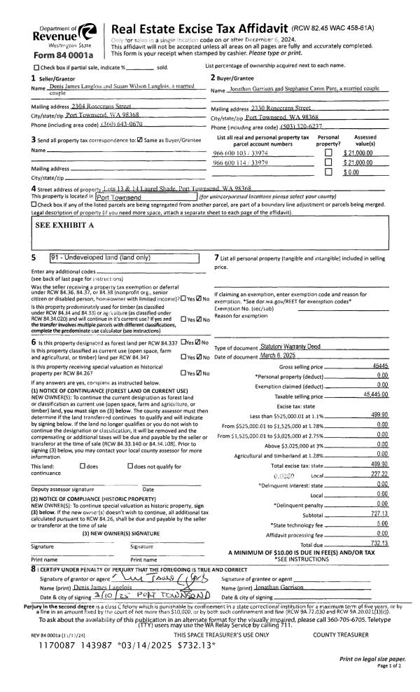| 1 | 03/06/2025 | SWD | Statutory Warranty Deed | DENIS J LANGLOIS | JONATHAN GARRISON & STEPHANIE C PARE | | | $45,445.00 | 143987 | |