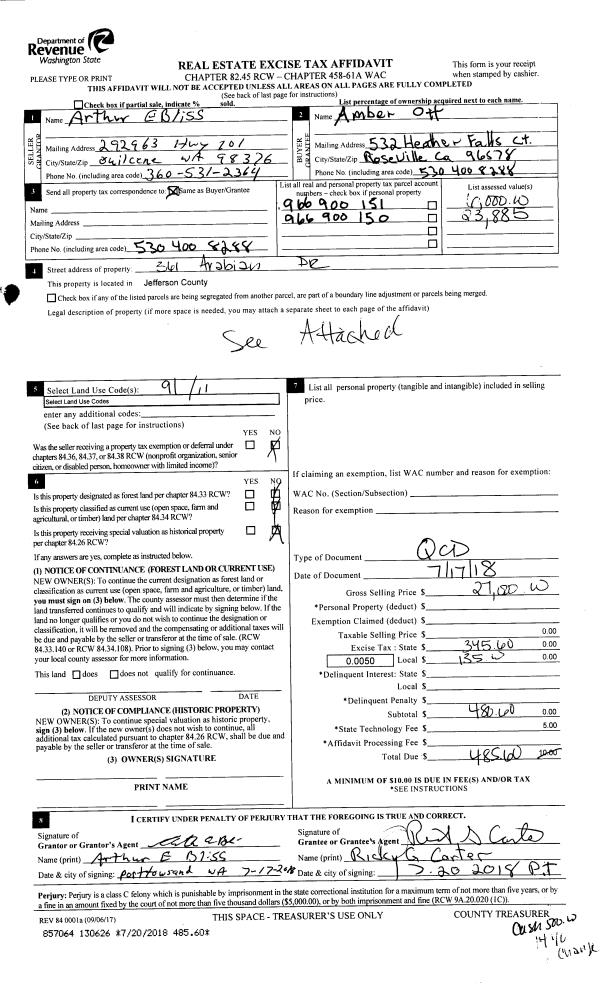 | 2 | 07/17/2018 | QCD | Quit Claim Deed | ARTHUR E BLISS | AMBER OTT | | | $27,000.00 | 130626 | |