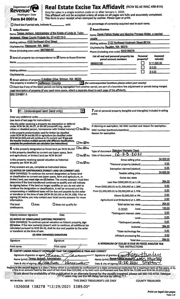 | 1 | 12/23/2021 | SWD | Statutory Warranty Deed | LINDA TUDOR | DEREK P & MURPHIE F WALTER | | | $24,000.00 | 138278 | |