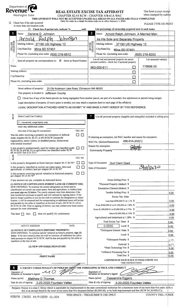 | Mailing Address: | 310 4 CORNERS RD PORT TOWNSEND, WA 98368-9368 | % Ownership: | 100.0000000000% |