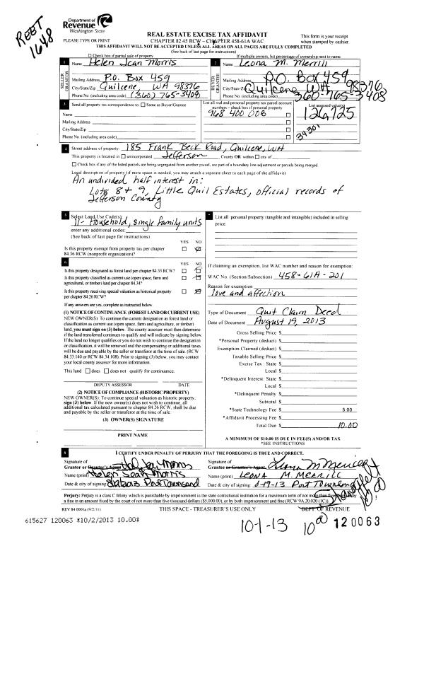 | Address: | 185 FRANK BECK RD QUILCENE, WA 98376 | Mapsco: | 106/055 |