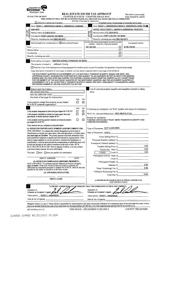 | Mailing Address: | 4288 HOLCOMB ST PORT TOWNSEND, WA 98368-2153 | % Ownership: | 100.0000000000% |