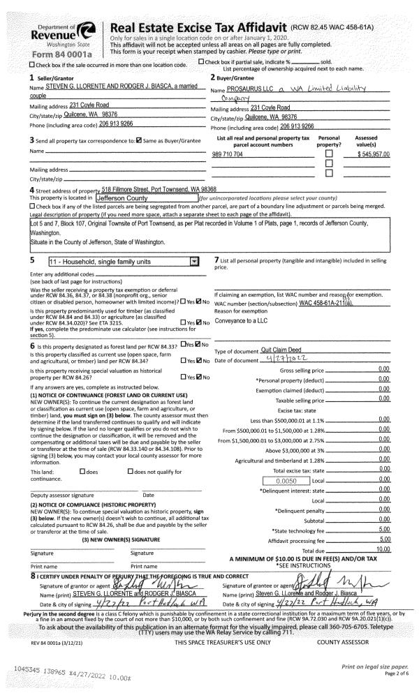 | 2 | 12/13/2016 | QCD | Quit Claim Deed | JAMES S DUNCAN TRUSTEE | QUAIL RUN WASHINGTON INVESTMENTS LLC | | | | 126794 | |