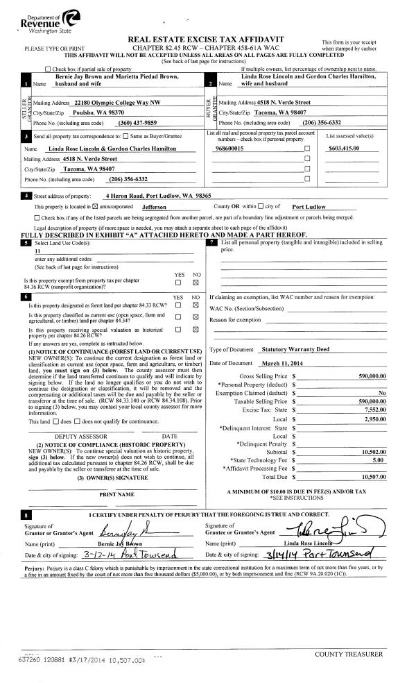 | 2 | 03/11/2014 | SWD | Statutory Warranty Deed | BERNIE J BROWN | GORDON HAMILTON | | | $590,000.00 | 120881 | |