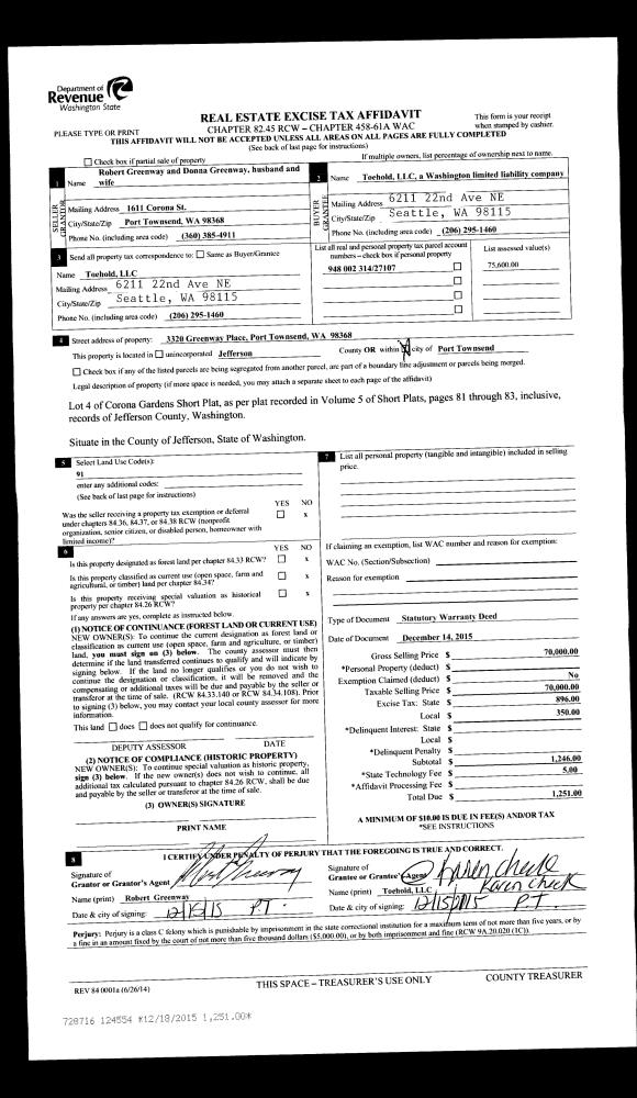 | 5 | 08/22/1994 | SWD | Statutory Warranty Deed | POPE RESOURCES | MADSON, DENNIS/KATE | 0 | 0 | $49,600.00 | 74985 | 0 |
