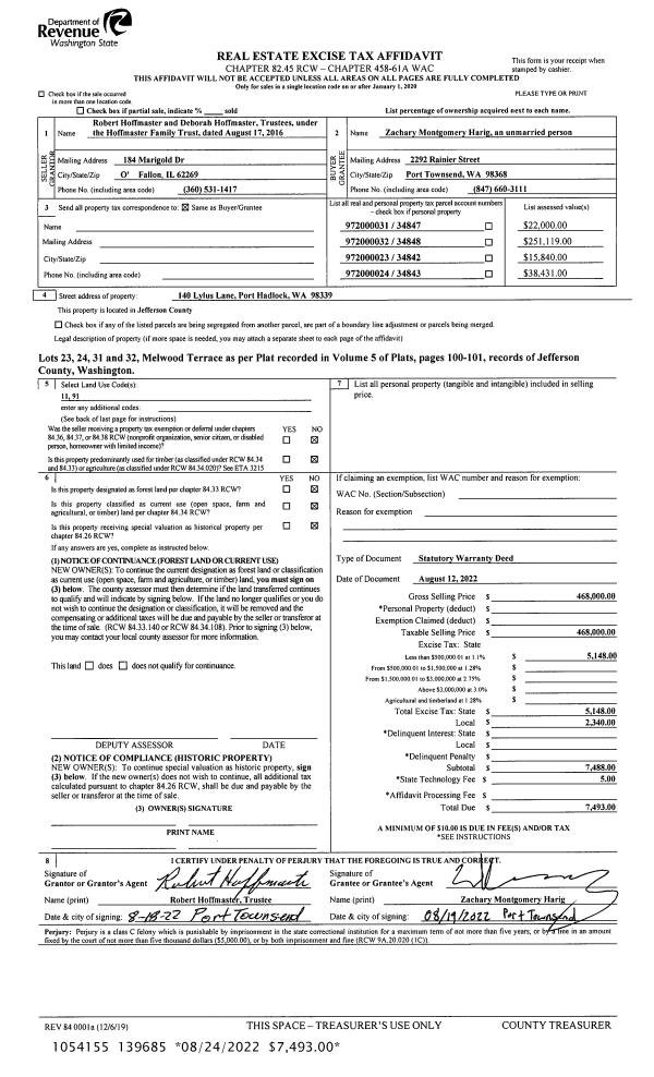 | 1 | 08/12/2022 | SWD | Statutory Warranty Deed | HOFFMASTER FAMILY TRUST | ZACHARY M HARIG | | | $468,000.00 | 139685 | |