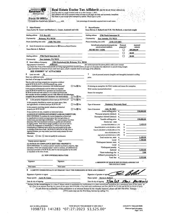 | 2 | 01/24/2008 | SWD | Statutory Warranty Deed | WILLIAMSON, SHEILA | NORDBERG, MICHAEL/LUCINDA | 0 | 0 | $70,000.00 | 110762 | 0 |