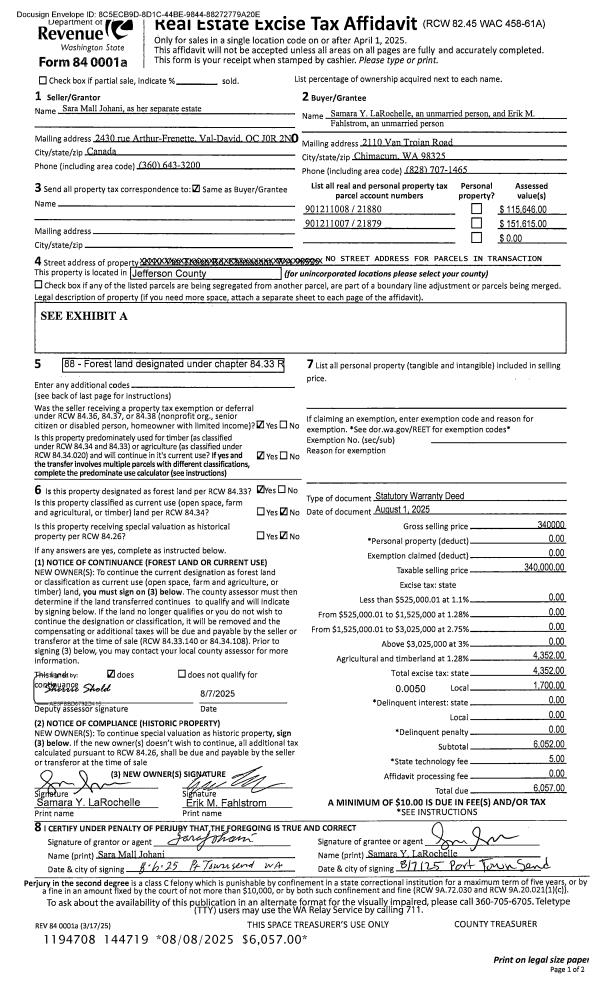 | Mailing Address: | BRYAN DeCATERINA PO BOX 143 PORT TOWNSEND, WA 98368-1430 | % Ownership: | 100.0000000000% |