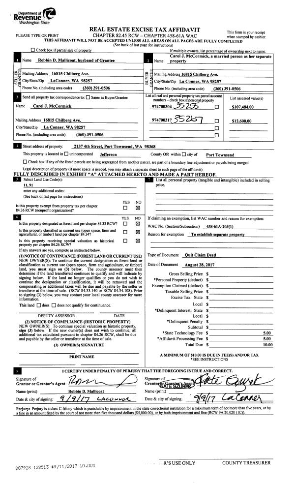 | 4 | 08/28/2017 | SWD | Statutory Warranty Deed | KIRSTEN CAMPBELL | CAROL J MCCORMICK | | | $225,000.00 | 128512 | |