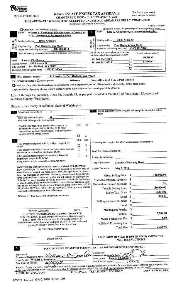 | Mailing Address: | 1240 W SIMS WAY # 415 PORT TOWNSEND, WA 98368-3058 | % Ownership: | 100.0000000000% |