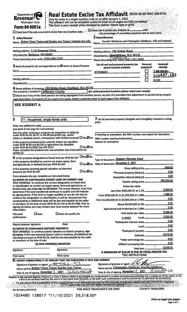 | 1 | 11/02/2021 | SWD | Statutory Warranty Deed | ROBERT & KENDRA TURNER | JENNIFER & CHRISTOPHER MATTHEWS | | | $585,000.00 | 138017 | |