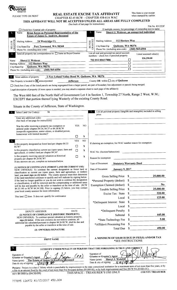 | 2 | 12/13/2016 | SWD | Statutory Warranty Deed | JAMES P CLAWSON | GREGORY & SHELLEY PATTON JTWROS | | | $548,600.00 | 126917 | |