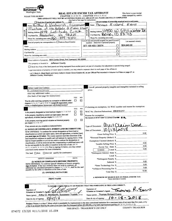 | 2 | 10/13/2018 | QCD | Quit Claim Deed | | | | | | 131320 | |