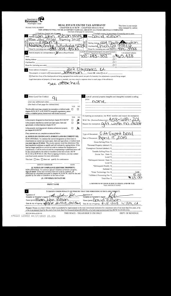 | Mailing Address: | JAMES H & LYNNE E DEWITT TRUSTEES 1240 W SIMS WAY #14 PORT TOWNSEND, WA 98368 | % Ownership: | 100.0000000000% |