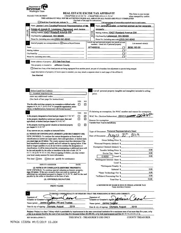 | 3 | 08/20/2019 | PRD | Personal Representatives Deed | | | | | | 133056 | |