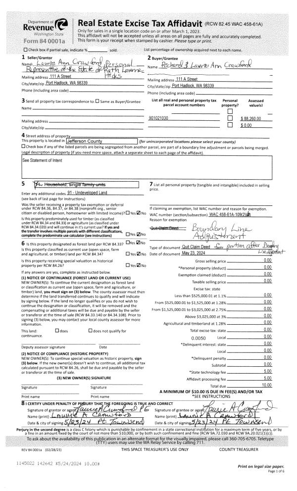 | 2 | 06/02/1993 | QCD | Quit Claim Deed | W WASH CORP SEVENTH DAY A | PADDOCK, HARLAN T/STELLA M | 0 | 0 | $0.00 | 71647 | 0 |