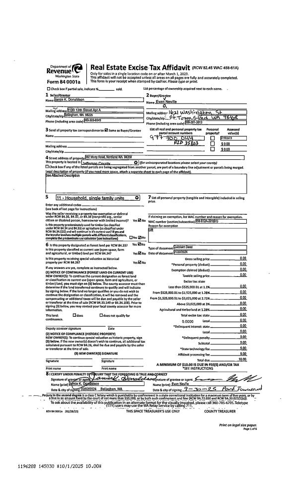| 1 | 01/30/2024 | QCD | Quit Claim Deed | JAMIE K DONALDSON | EVAN O NEVILLE | | | | 145030 | |