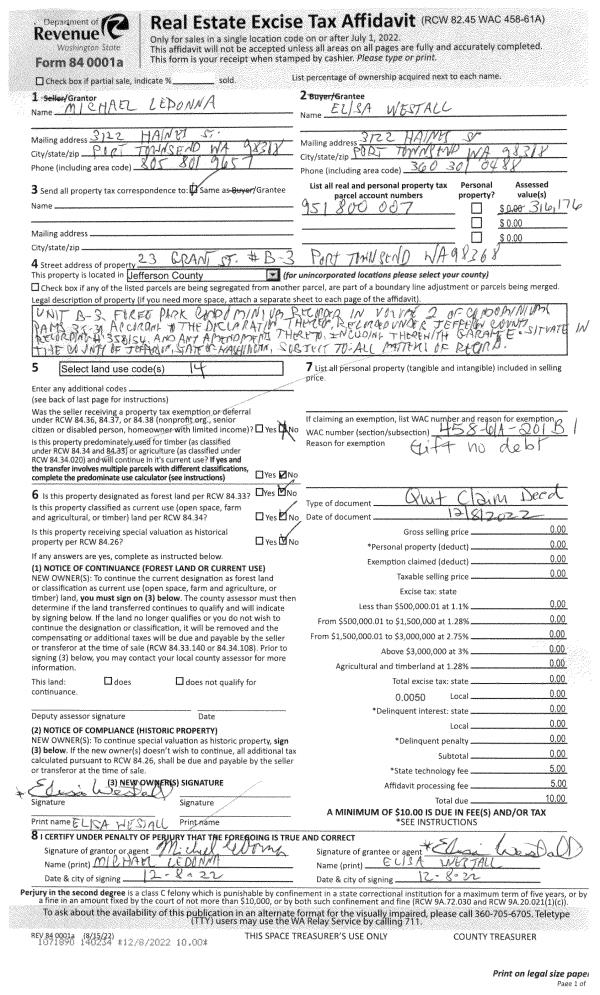 | 2023 | 25215 | CONSERVE - CONSERVATION FUTURES | $14.97 | $14.96 | $0.00 | $0.00 | $29.93 | $0.00 |