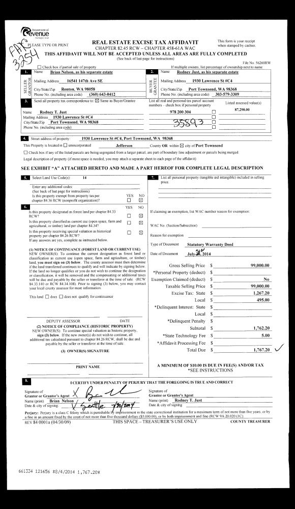 | 2 | 07/31/2014 | SWD | Statutory Warranty Deed | BRIAN NELSON | RODNEY JUST | | | $99,000.00 | 121656 | |