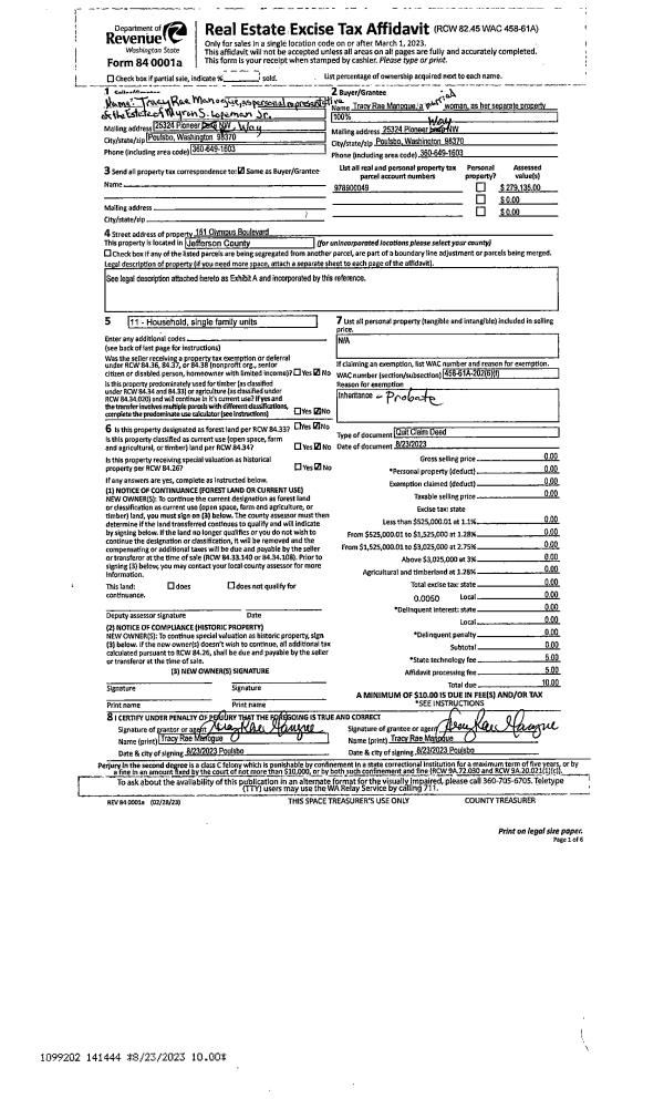 | 1 | 08/23/2023 | QCD | Quit Claim Deed | TRACY R MANOGUE PERSONAL REPRESENTATIVE | TRACY R MANOGUE | | | | 141444 | |