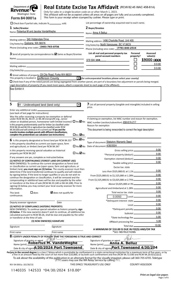| 1 | 04/25/2011 | SWD | Statutory Warranty Deed | VANDEWEGHE, ROBERTUS M/JA | ANDREW, JOEL/JESSICA A DRESSEL | | | $8,000.00 | 115882 | 0 |