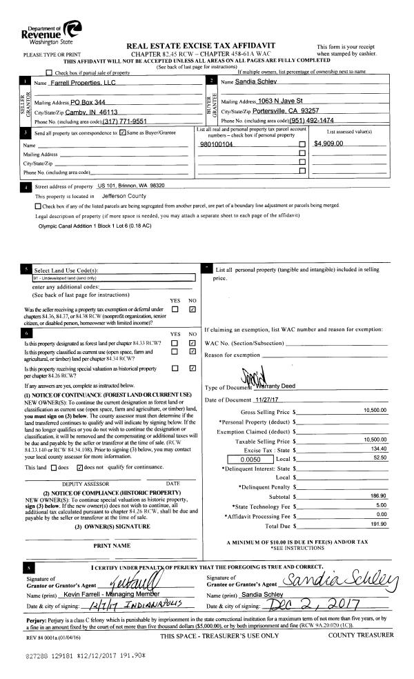 | 4 | 11/27/2017 | SPWD | Special Warranty Deed | FARRELL PROPERTIES LLC | SANDIA SCHLEV | | | $10,500.00 | 129181 | |